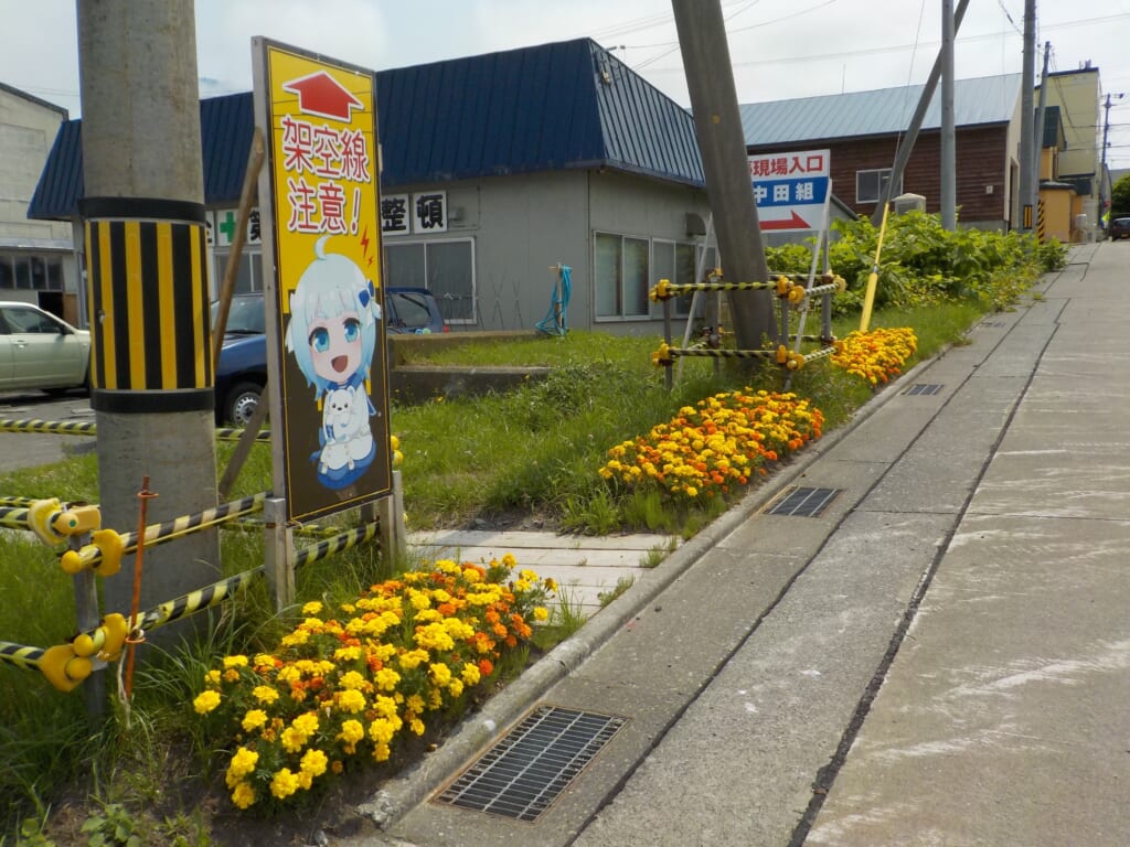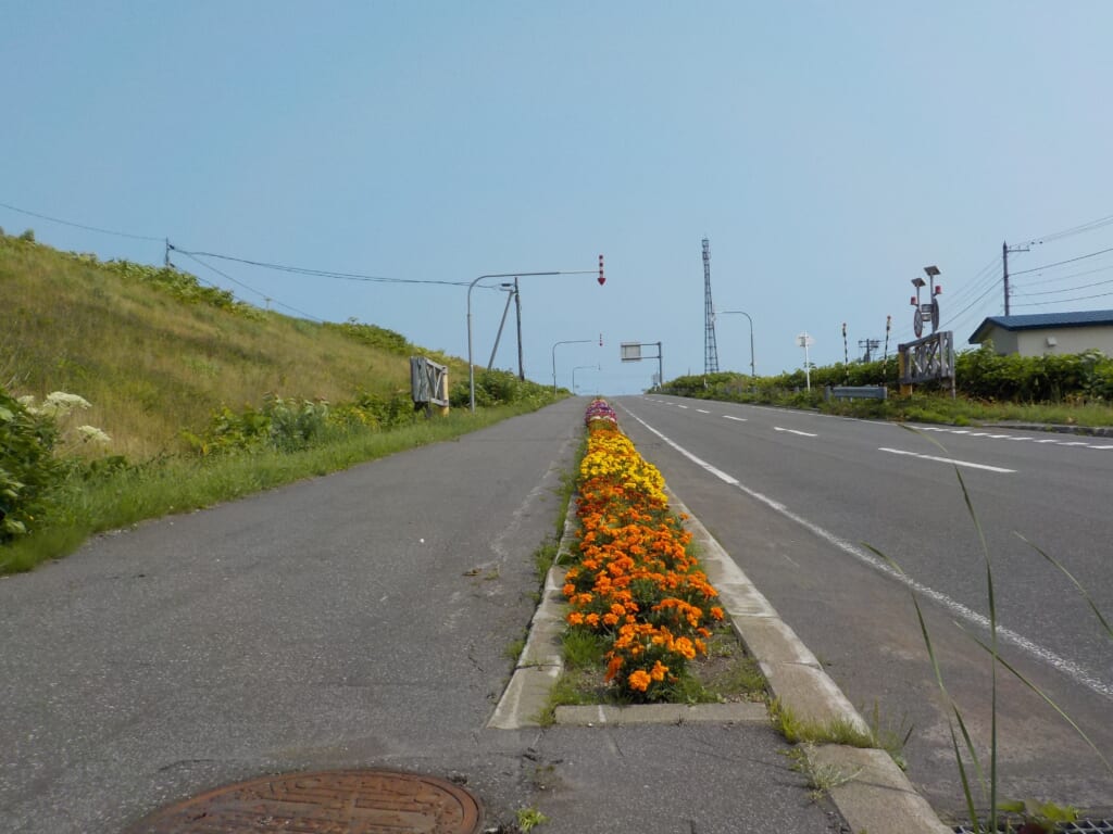現場事務所と利尻沿道が花でいっぱいの様子(SDG’s実践フォト)