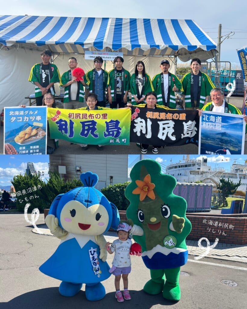 なんと当日、会場には沼津のアイドル「ひものん」と利尻町の人気者「りしりん」の姿が!!